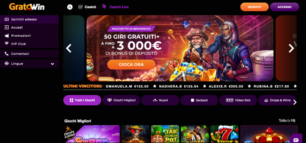 Gratowin è noto per il suo bonus senza deposito immediato e un’esperienza di gioco unica.